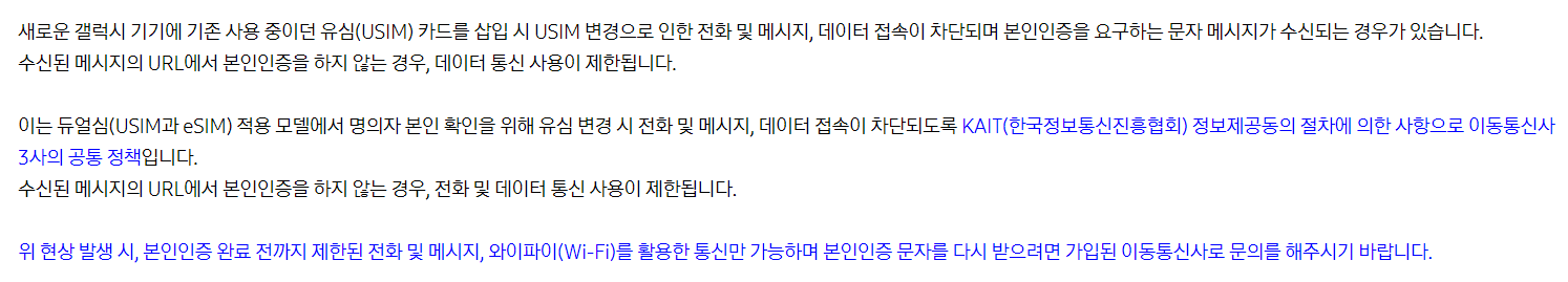 유심 교체후 문자로 온 본인확인 꼭 하셔야 합니다!