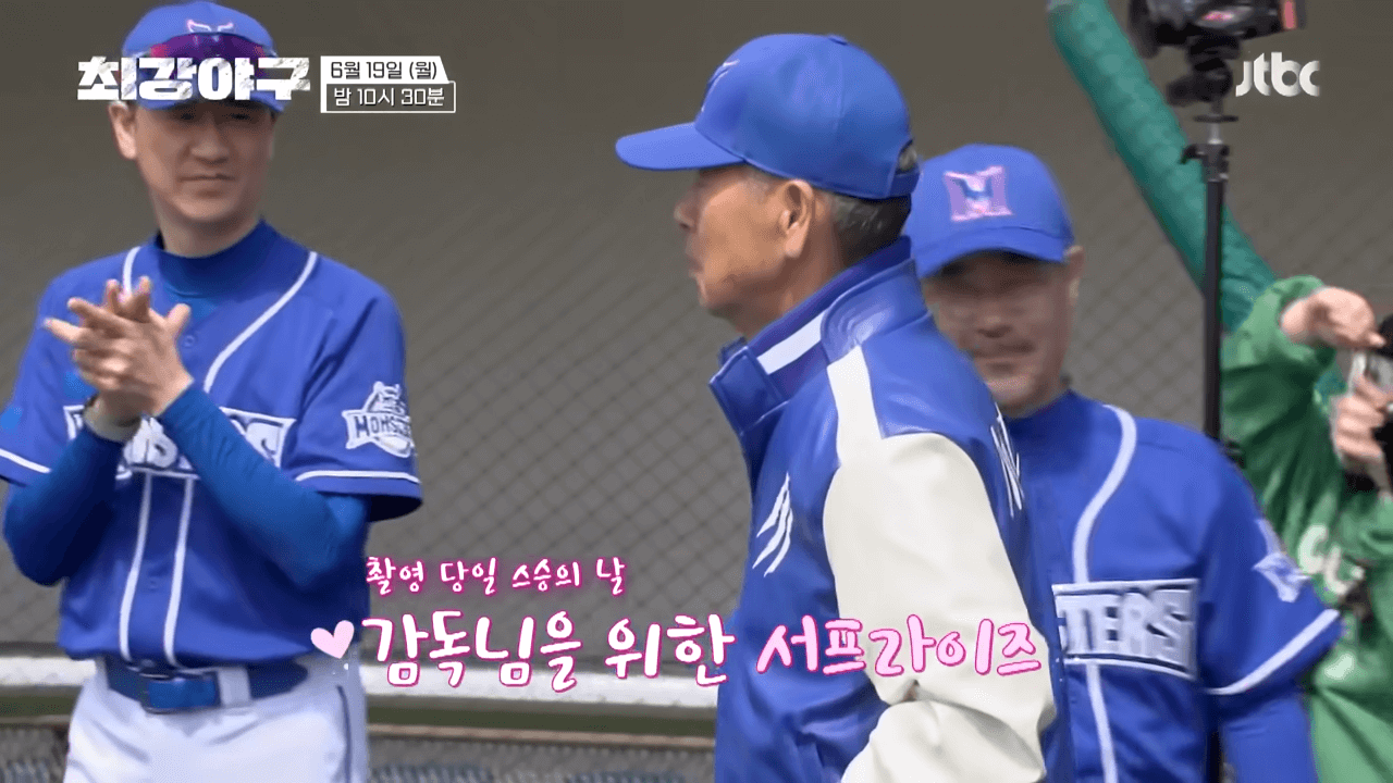 최강야구 45회(23.06.19)에서는 김성근 감독님 및 코치진(오세훈, 이광길 코치님)을 위해 몬스터즈가 이벤트를 준비했다고 합니다. 과연 무슨 이벤트일까요???