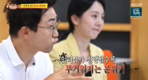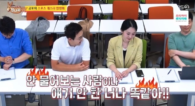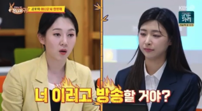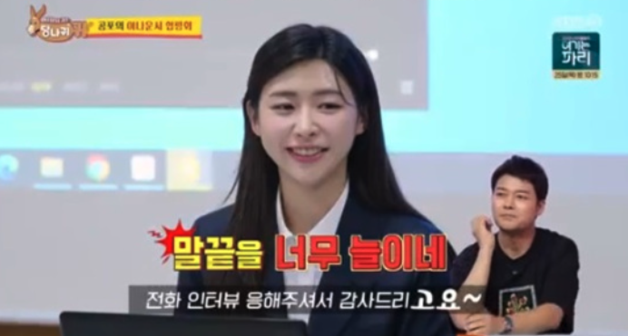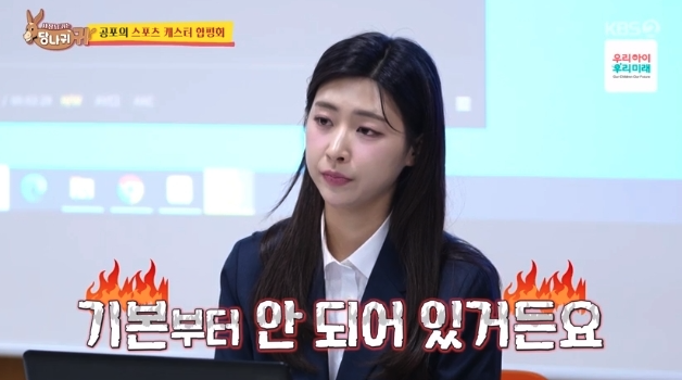 21일 방송된 KBS 예능 '사장님 귀는 당나귀 귀' 에서 선배 아나운서들과 함께 합평회를 하는 모습이 방송에 담겼는데요, 엄지인 아나운서는 홍주연 아나운서에게 체조 해설위원 여홍철 위원과의 즉석 전화 인터뷰 미션을 전달했습니다. 홍주연 아나운서는 이에 여홍철 해설위원의 첫 해설 시기를 언급하다가 틀리는 등 첫 질문부터 실수를 하고 말았습니다.